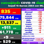 タイ東部チョンブリ県は2021年9月15日(水)朝6時半、新型コロナウイルスの最新の感染状況を発表し[...]