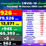 タイ保健省は2021年9月19日(日)朝、1日で確認された新型コロナウイルス陽性者が13,576人で[...]