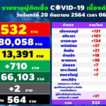 タイ保健省は2021年9月20日(月)朝、1日で確認された新型コロナウイルス陽性者が12,709人で[...]