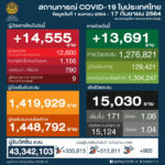 タイ保健省は2021年9月17日(金)朝、1日で確認された新型コロナウイルス陽性者が14,555人で[...]