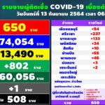 タイ保健省は2021年9月7日(火)朝、1日で確認された新型コロナウイルス陽性者が13,821人で、[...]