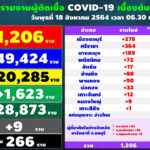 タイ保健省は2021年8月21日(土)朝、1日で確認された新型コロナウイルス陽性者が20,571人で[...]