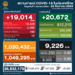 タイ保健省は2021年8月19日(木)朝、1日で確認された新型コロナウイルス陽性者が20,902人で[...]