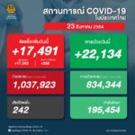 タイ保健省は2021年8月23日(月)朝、1日で確認された新型コロナウイルス陽性者が17,491人で[...]