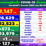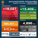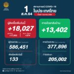 タイ保健省は2021年8月1日(日)朝、1日で確認された新型コロナウイルス陽性者が18,027人だっ[...]