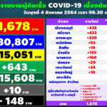 タイ東部チョンブリ県は2021年8月4日(水)朝6時半、新型コロナウイルスの最新の感染状況を発表しま[...]