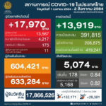タイ保健省は2021年8月2日(月)朝、1日で確認された新型コロナウイルス陽性者が17,970人だっ[...]
