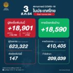 タイ保健省は2021年8月3日(火)朝、1日で確認された新型コロナウイルス陽性者が18,901人だっ[...]