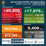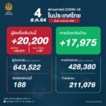 タイ保健省は2021年8月4日(水)朝、1日で確認された新型コロナウイルス陽性者が20,200人だっ[...]