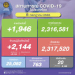 タイ保健省は2022年7月8日(金)、1日で確認された新型コロナウイルス陽性者が2,144人(海外か[...]