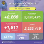 タイ保健省は2022年7月11日(月)、1日で確認された新型コロナウイルス陽性者が1,811人(海外[...]