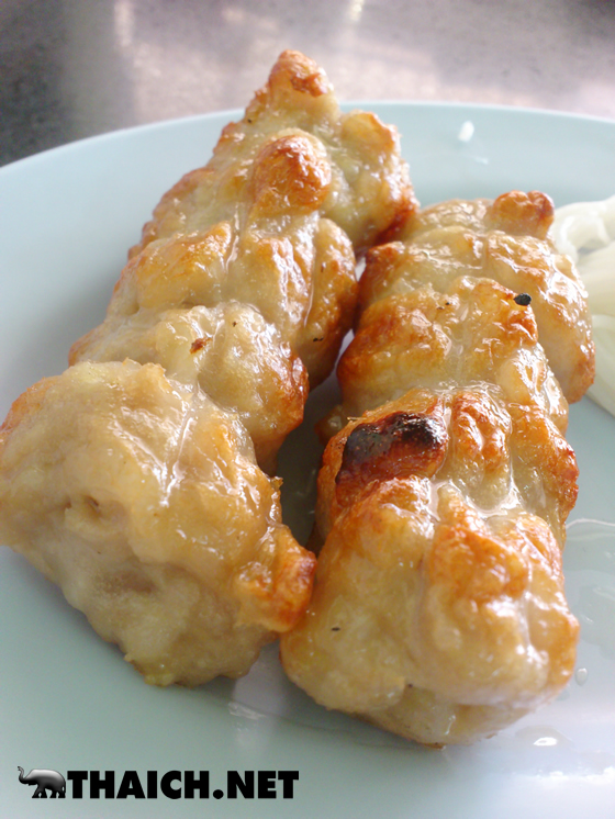 ネームヌアンとはベトナムから伝わり、イサーンなどで食べられる料理。竹輪のように、豚肉の練り物を串に巻き付けて焼いたもの。ネームヌアンを小さく切って、ハーブやニンニクなどとともに、レタスやライスペーパーで巻いて食べる。