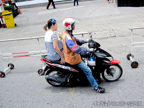モタサイと呼ばれるオートバイタクシーは渋滞の多いバンコクの街では欠かせない庶民の足です。