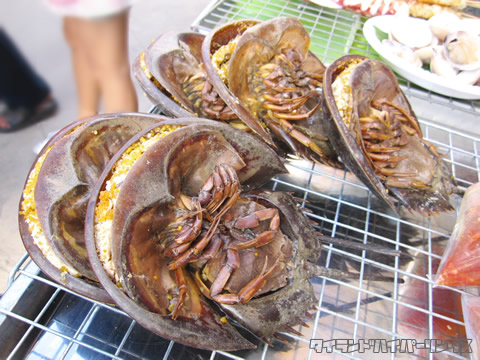 日本では天然記念物に指定されているカブトガニですが、タイでは食べてしまいます。
