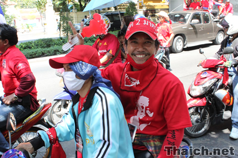 2010年3月14日の反独裁民主戦線(UDD)の集会に向かう地方の赤服隊です。 赤服の中には小学生以下の子どもたちの姿も目立ち、まるで家族で行楽へ向かうかの様です。