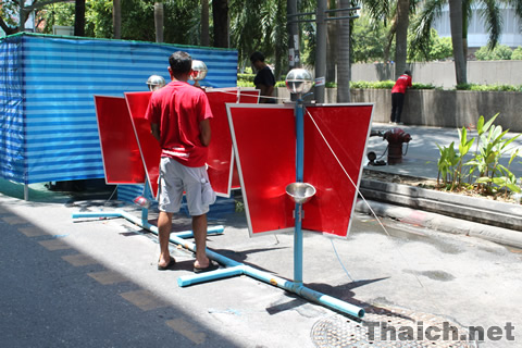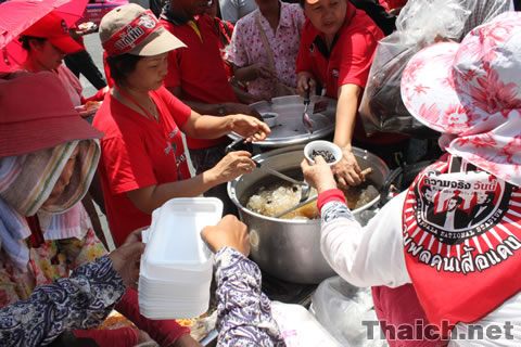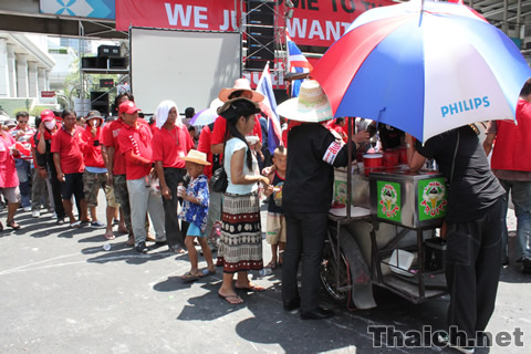 35度を越える猛暑の中の赤服デモ隊の様子です。