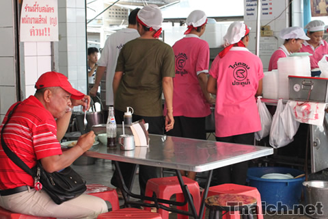 有名なプラトゥナームピンクのカオマンガイ屋さんも赤化。