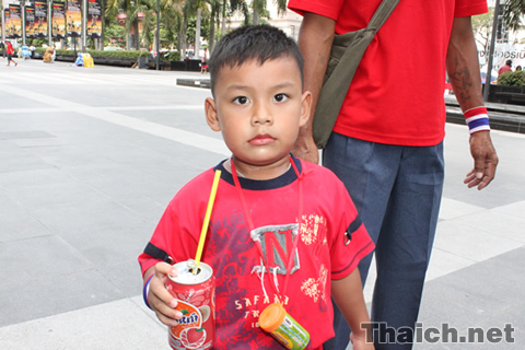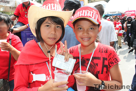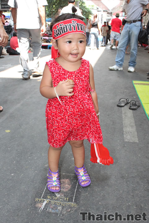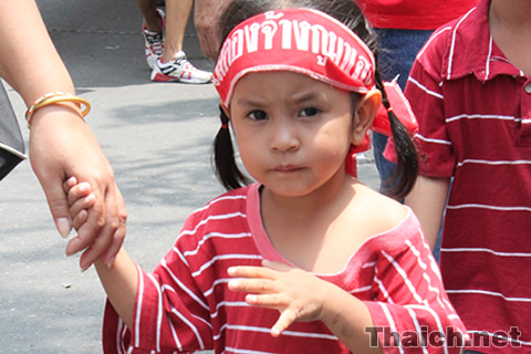 タクシン元首相の支持団体「反独裁民主統一戦線(UDD)」のデモには、家族総出で参加する人々の姿も多く見られます。