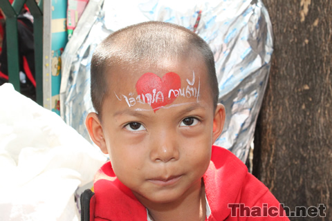 上の写真は道路に貼られたアピシット首相の写真を踏まされる子供です。