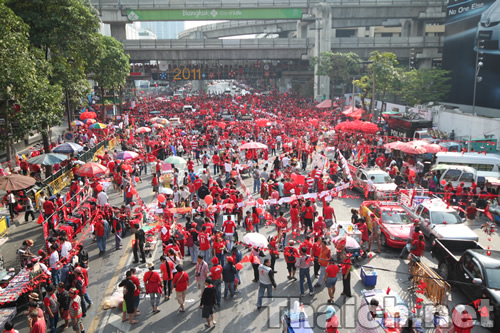 2010年12月19日、バンコク・ラチャプラソン交差点を封鎖して行われたタクシン元首相派「反独裁民主戦線(UDD)」デモの模様です。<br />