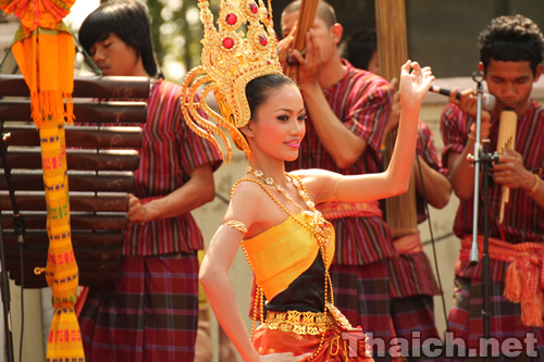 タイ伝統舞踊を踊るタイ人女性の画像です。 タイの小学校では、タイ舞踊の授業があるところもあるそうです。 タイ伝統舞踊については以下に日本国外務省のHPより抜粋します。