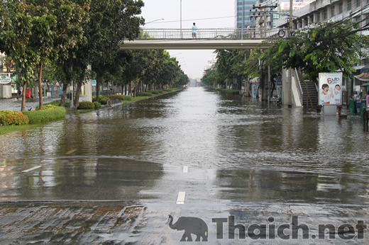 【洪水】ラチャダーピセーク通りチャオパヤパークホテル辺り 2011年11月6日午前7時半頃