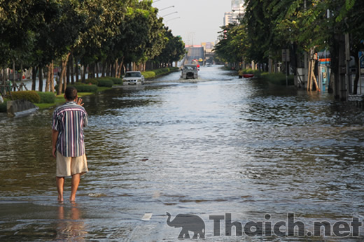 【洪水】ラチャダーピセーク通りチャオパヤパークホテル辺り 2011年11月8日午前8時頃