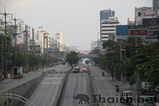 運河を挟んで北側 ラチャヨティン方面車線 2011年11月10日午前7時半頃のラチャダーピセーク通りチャオパヤパークホテル辺りです。