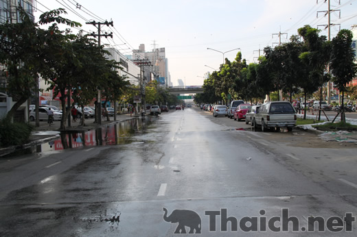 2011年11月15日午前8時頃のラチャダーピセーク通りチャオパヤパークホテル辺りです。