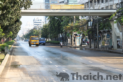 2011年11月16日午前8時頃のラチャダーピセーク通りチャオパヤパークホテル辺りです。