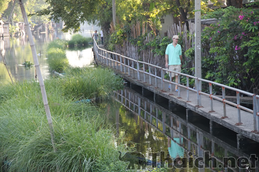 バンスー運河も水量が減少。運河を挟んで北側(ラチャヨティン方面)もほぼ水が引いています。