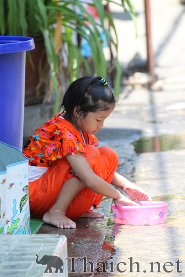 もともとは、純粋に新年のお祝いであり、家族が一堂に集って共同で仏像のお清めを行ったり、年輩の家族のお清めを行う期間であったが、後に単なる水の掛け合いに発展したため、現在では新年と言うよりも祭りという色彩が強い。このため日本では(タイの)水掛け祭りという言い方もする事がある。