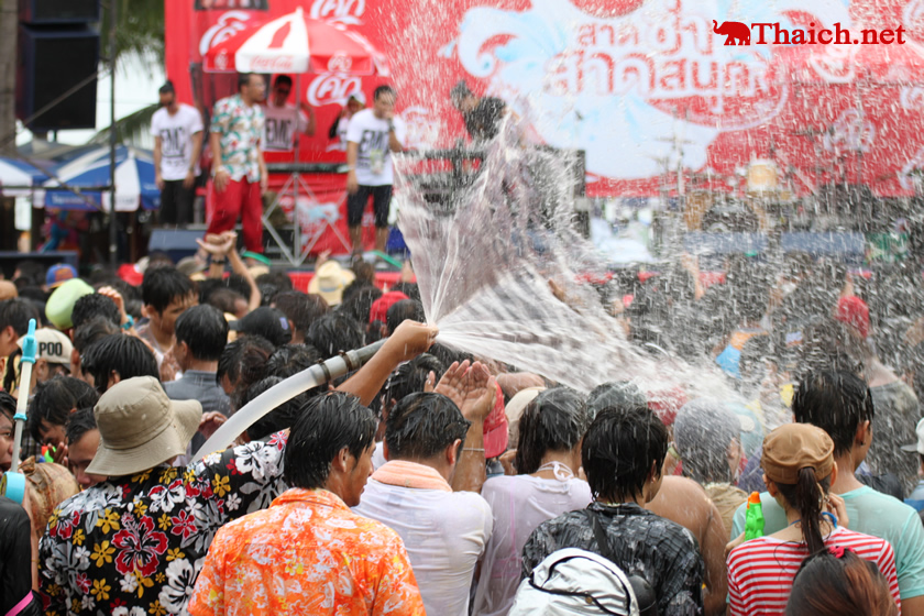バンコクでのソンクラーンが終了しても、チョンブリ県ではまだまだ続くソンクラーン。 メコン川が北から南へ流れていくように、ソンクラーンも南下していくそうです。 4月18日・19日はパタヤビーチがソンクラーン。まだまだ楽しみたい方は、今すぐパタヤへ向かいましょう! (2013年4月17日バンセーンビーチで撮影)