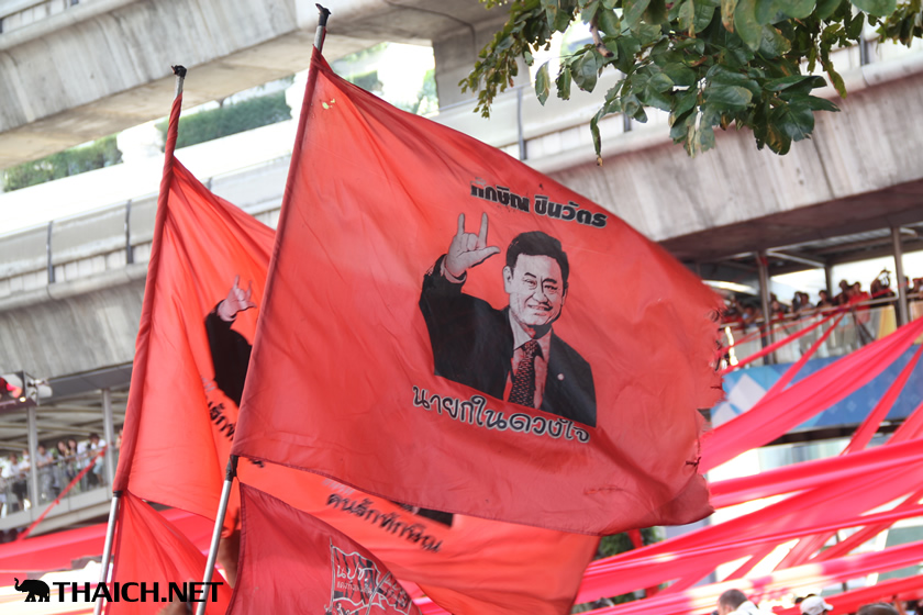 海外逃亡中のタクシン元首相(インラック現首相の実兄)の帰国が実現すると言われている恩赦法案に反対する反政府デモに対抗する形で行われた、バンコク・ラチャプラソン交差点でのタクシン派の赤服デモの様子です。