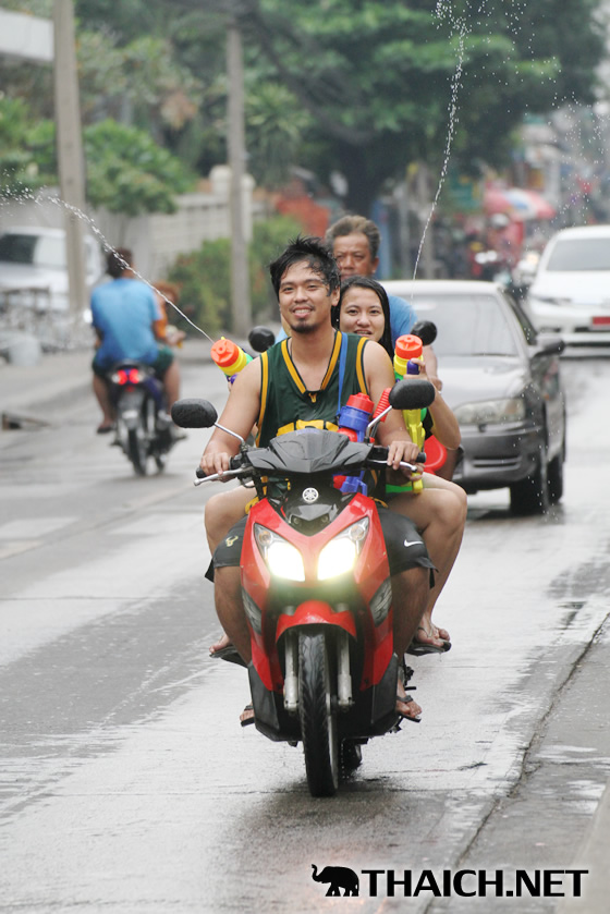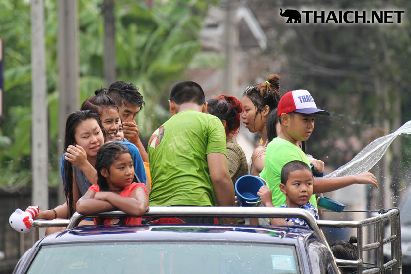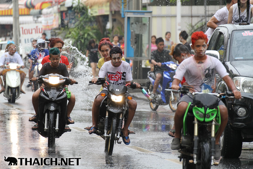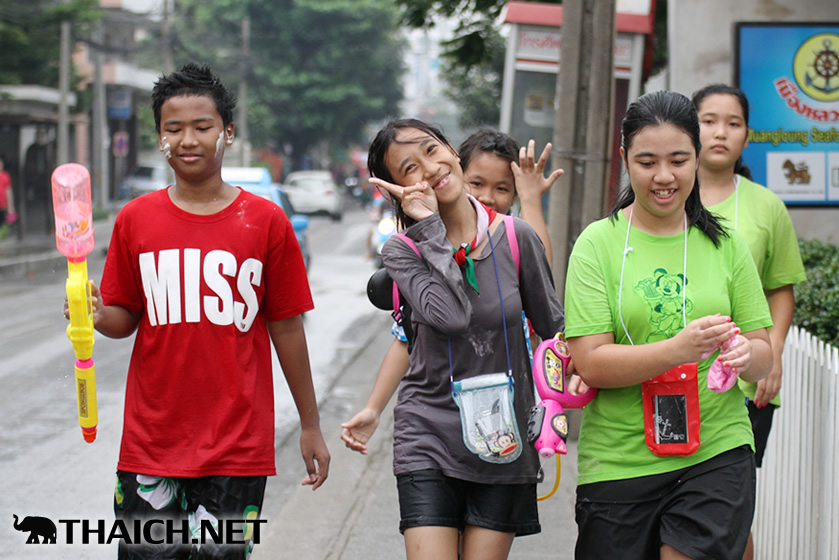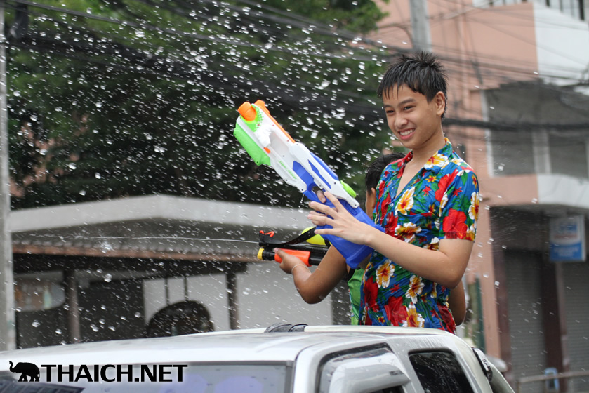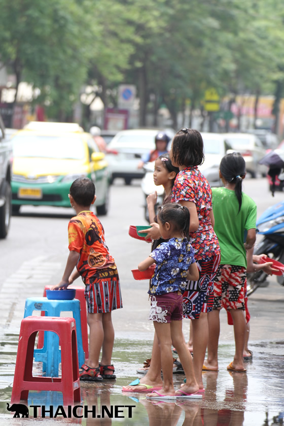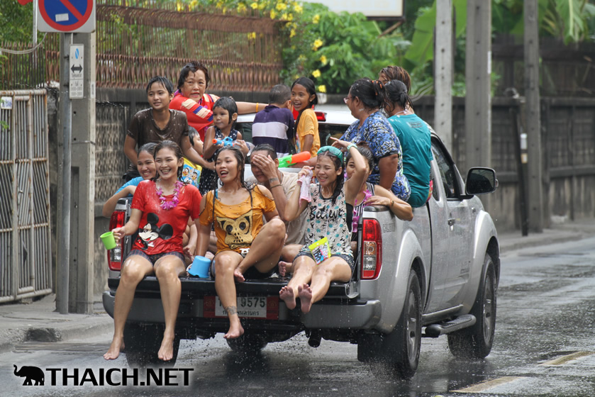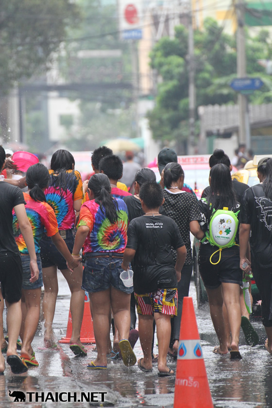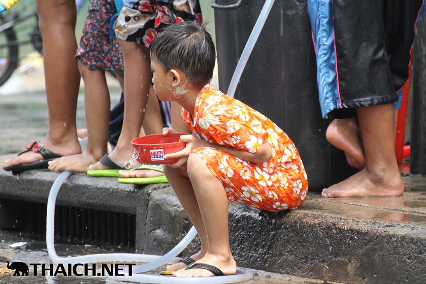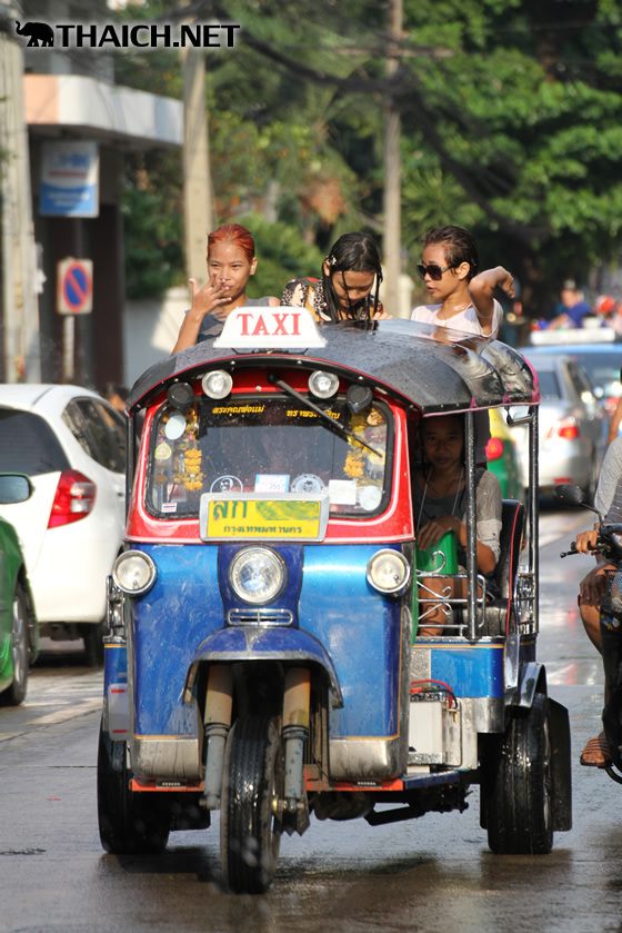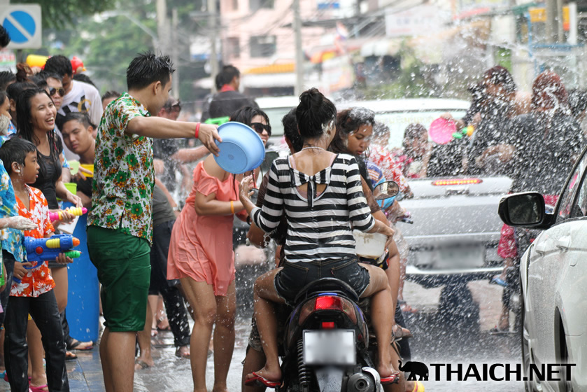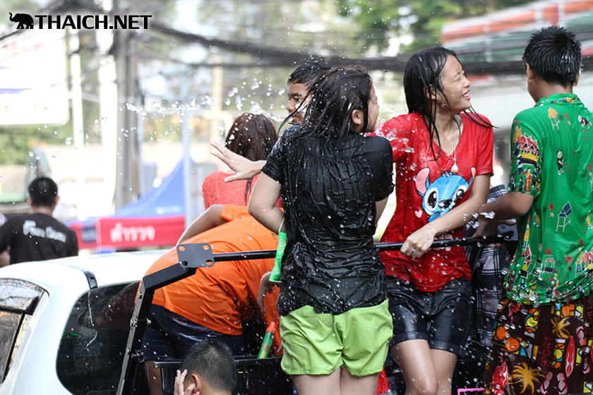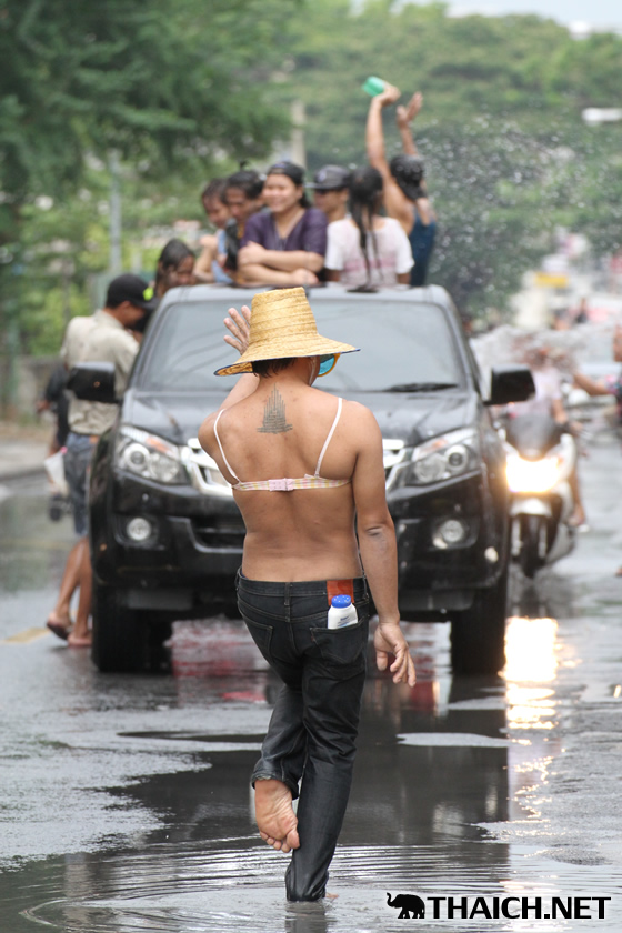 タイの正月ソンクラーン。老いも若きも男も女もニューハーフも水かけに夢中です! (2014年4月13日)
