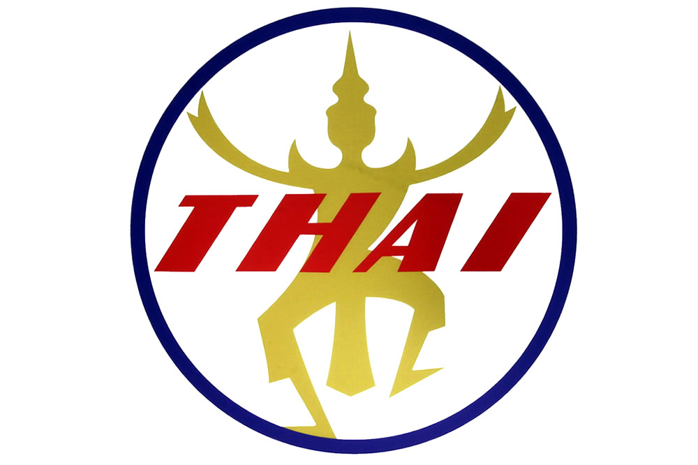 タイ国際航空ロゴマーク。 1960年の創業時から1975年まで使用されていたもので、通称「ダンシングマン」と呼ばれていました。 この画像はバンコクでのイベントで展示されたロゴを撮影した写真を明るく加工したもので、色はオリジナルと違っている可能性があります。 注)ロゴの著作権はタイ国際航空に帰属します。