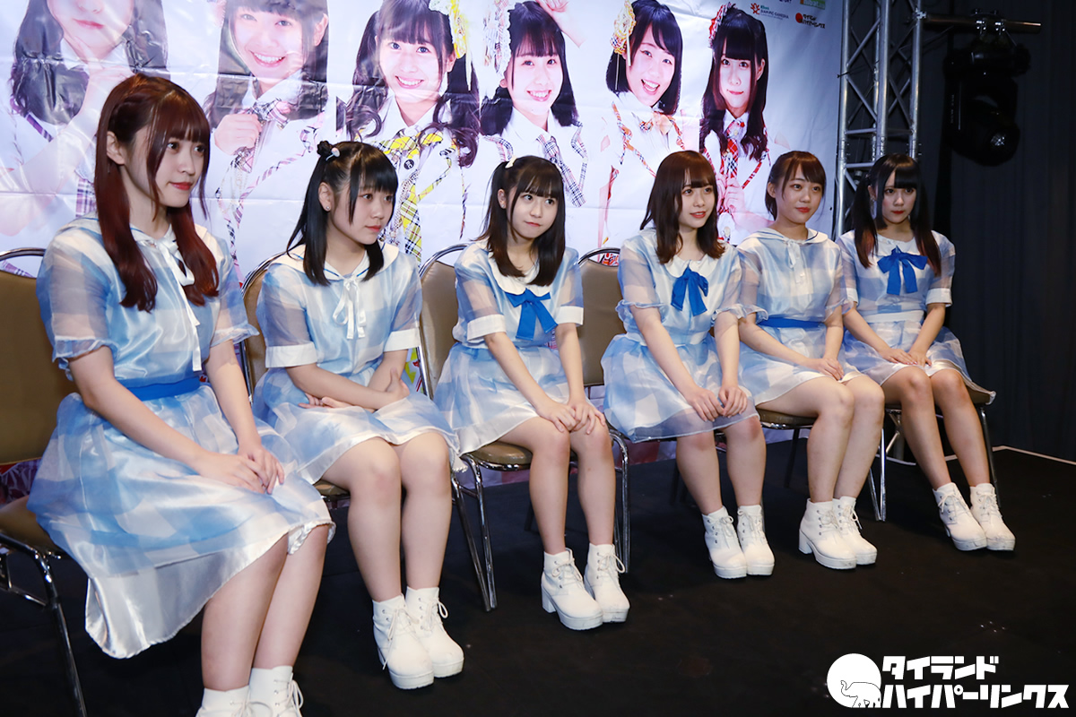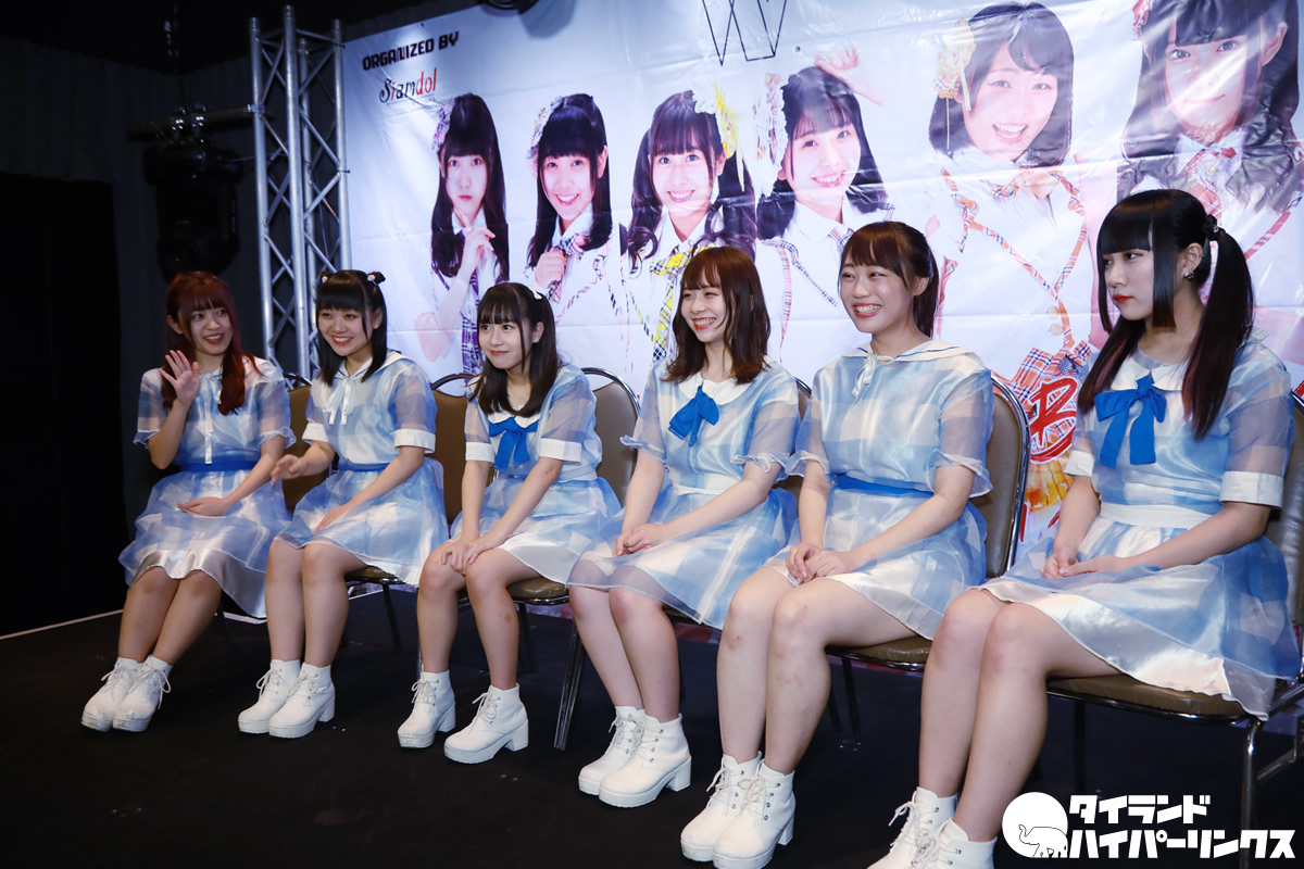 2018年にデビューしたW.(ダブルヴィー)はmint Music ENTERTAINMENTに所属。現在はNAOさん、REIKAさん、NOZOMIさん、YUURIさん、ITSUKIさん、NATSUKAさんの6人で活動中の、大学生1人と高校生5人による、フレッシュなグループです。今回グループとしては2019年1月と3月に続いての3度目のタイ遠征となりましたが、ITSUKIさん、NATSUKAさんは初めてのタイ体験です。