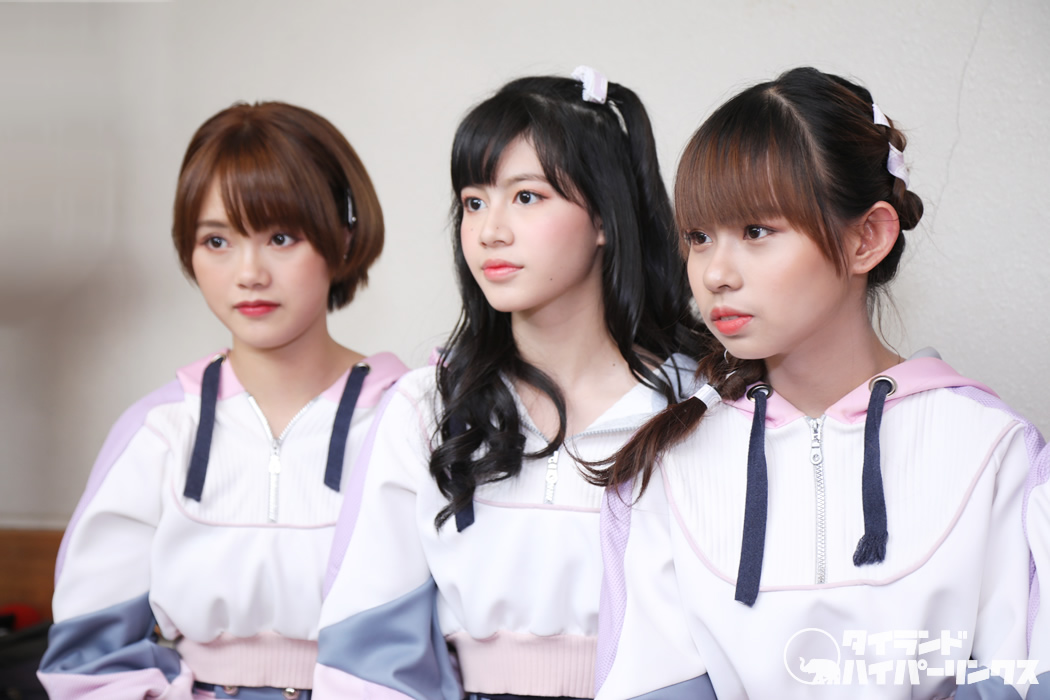 ジャー:私たちはAKB48の妹分です。タイ語で歌っていますけど日本のファンの皆さんには、心を開いてタイ語で聴いてほしいな。AKB48グループの他の国の曲は、その国の言語で聴いてほしいです。私が皆さんのことをいっぱい愛しますので・・・
