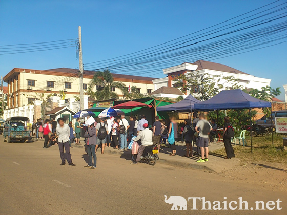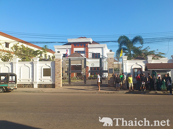 ビザの申請は月曜~金曜の午前8時30分から正午まで(タイ・ラオスの祝日を除く)です。早朝8時20分に領事館につくと、門の前には既に長い行列ができていました。