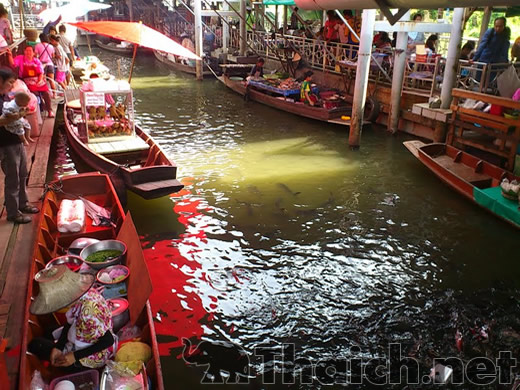 舟に乗ってお土産を買うダムヌンサドゥアックのような水上マーケットとは趣が異なる。