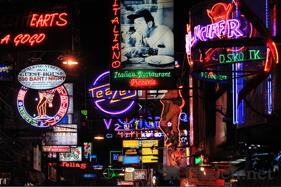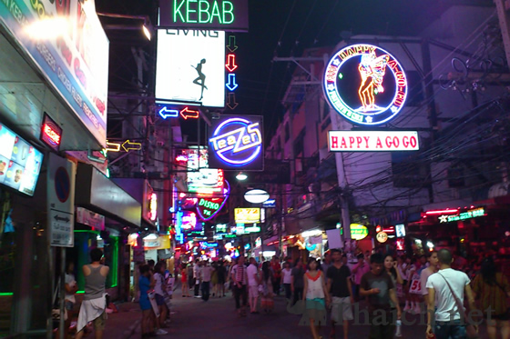パタヤナイトライフのメインストリート。歩行者天国で、通り沿いにはレストランや土産店、クラブ、バーなどが立ち並ぶ。