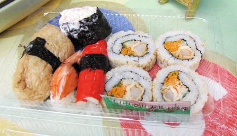 巻物セットが1000チャット(約100円)、握りや稲荷が入ったセットは1500チャット(約150円)でした。