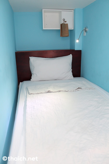 このように、清潔なカプセルホテル・タイプのベッドで読書用のライトも付いています!