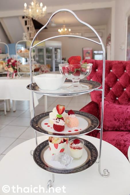 こちらはイチゴ日本品種のラオス産(糖度13)を使ったイチゴセット(380,000キープ)。ホテルのアフターヌーン・ティーを思わせる豪華さですね!