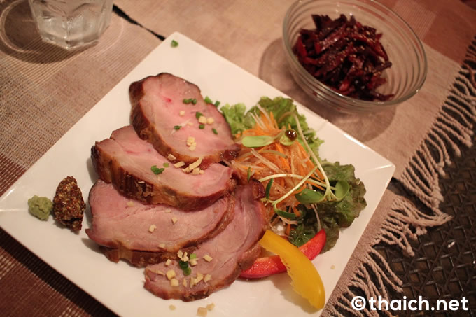 この日は、「ローストポーク(45,000キップ=約600円)」と「ビーツのバルサミコ酢きんぴら(15,000キップ=約200円)」を注文。ローストポークは手間がかかっていて、柔らかく香りが最高。きんぴらもシャキシャキとした歯ごたえと懐かしい味付けです。