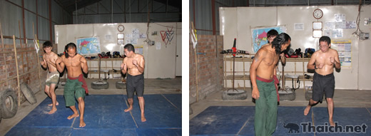 その後、ミット打ち(ワシの優雅な猫パンチの写真を見て欲しい!ミッキー・ロークも真っ青のへなちょこ振りじゃ!)、組み手などを教えてくれた。