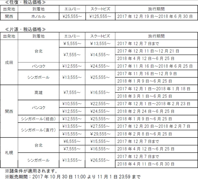 「日本就航5周年を迎えることができ、大変嬉しく思います。これまでご搭乗いただきましたお客様、関係者の皆さまに心より感謝申し上げます。スクートはこれを記念し感謝の気持ちを込め、2017年10月30日から11月1日の3日間限定でキャンペーンを実施いたします。ぜひこの機会にゆったりとしたスクートのB787(ドリームライナー)をご体験ください。」