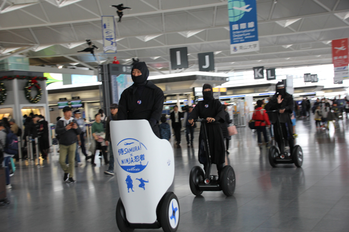 これまで毎月22日をセントレアの忍者の日として設定し、サムライと NINJAが空港内で写真撮影などのおもてなしを実施してきましたが、12月22日より、セントレアでも人気のセグウェイガイドツアー(https://www.centrair.jp/enjoy/visit/segway/)が「サムライ×NINJA空港プロジェクト」に新たに加わり、ツアーインストラクターが忍者に仮装してご案内を行う「忍者セグウェイ・ガイドツアー」が12月22日から新たに始まりました。